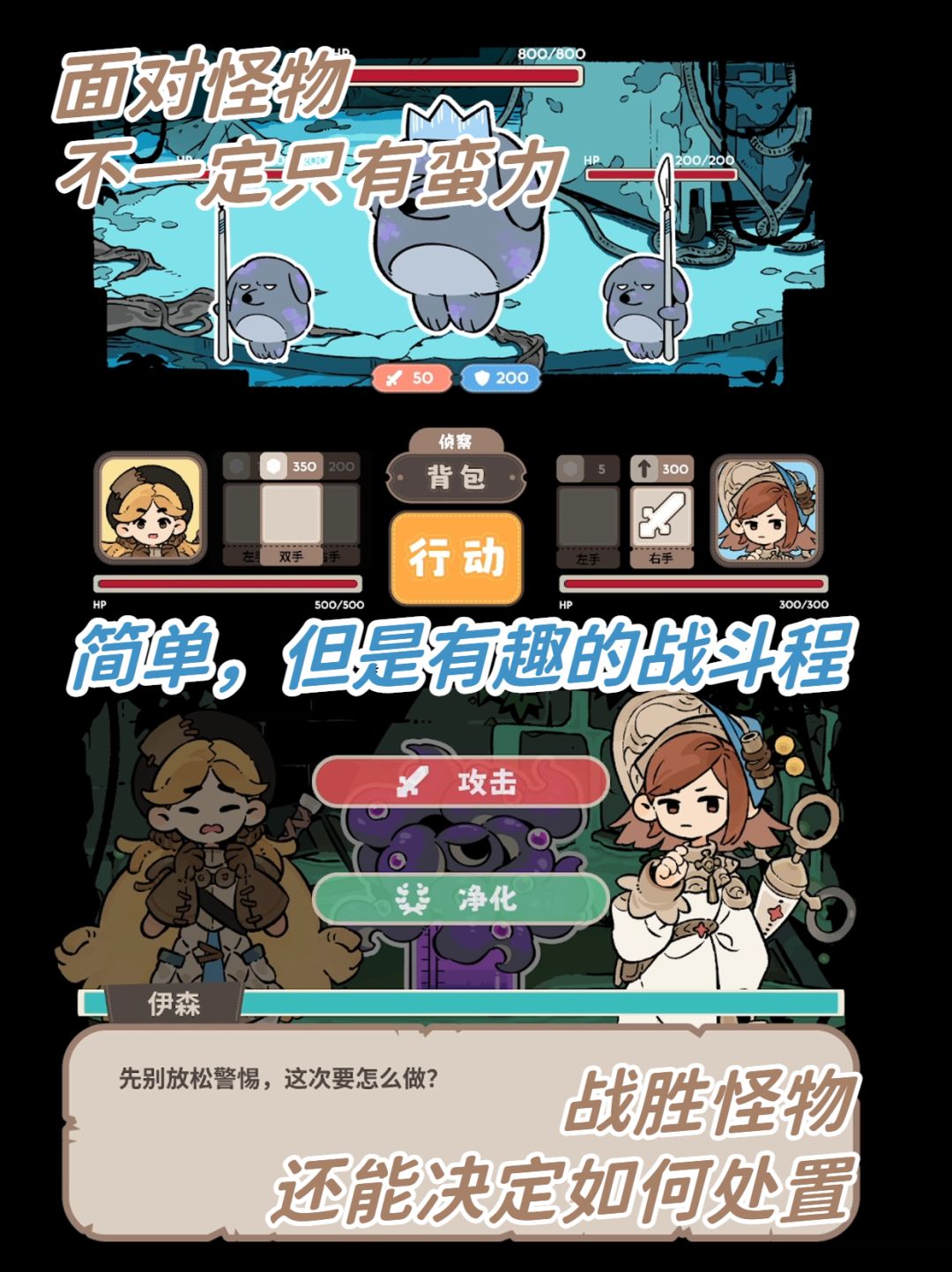 《奇愈地下城》讲述了一位新晋勇者和一位专职术士在地下城的冒险故事。在游戏中,你需要调整左右手的不同装备和道具,根据战斗情况作出选择,是彻底消灭敌人还是选择净化,你的每一个决定都会影响游戏的发展方向。🌟ㅤ