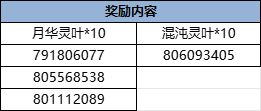 将在参与成功并答对的玩家里抽取月华灵叶*10(10位),混沌灵叶*10(1位)