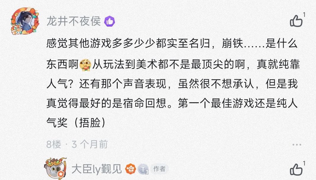 甚至有人曾经留言跟我说喜欢宿命回响的音乐,问为什么没在Tap拿奖,可怜苦心人终成负心人