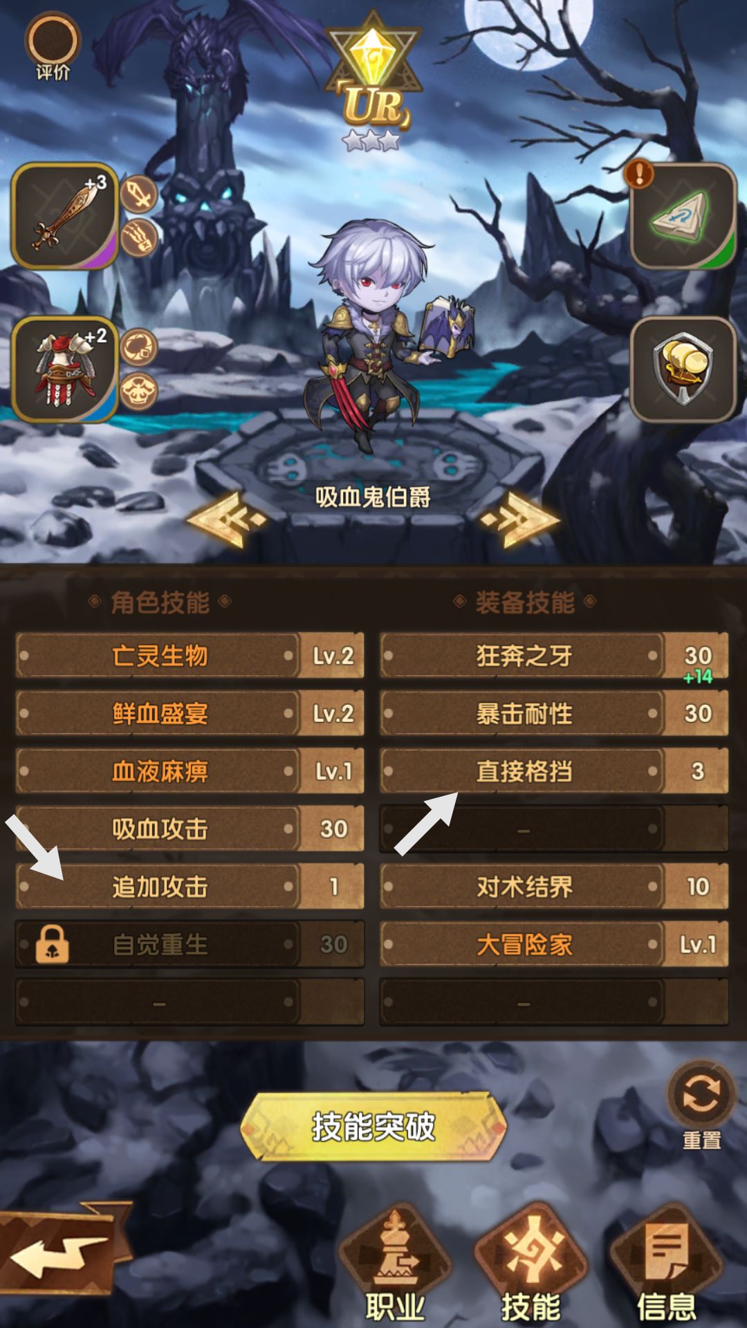 比较重要的技能我都用白箭头标了