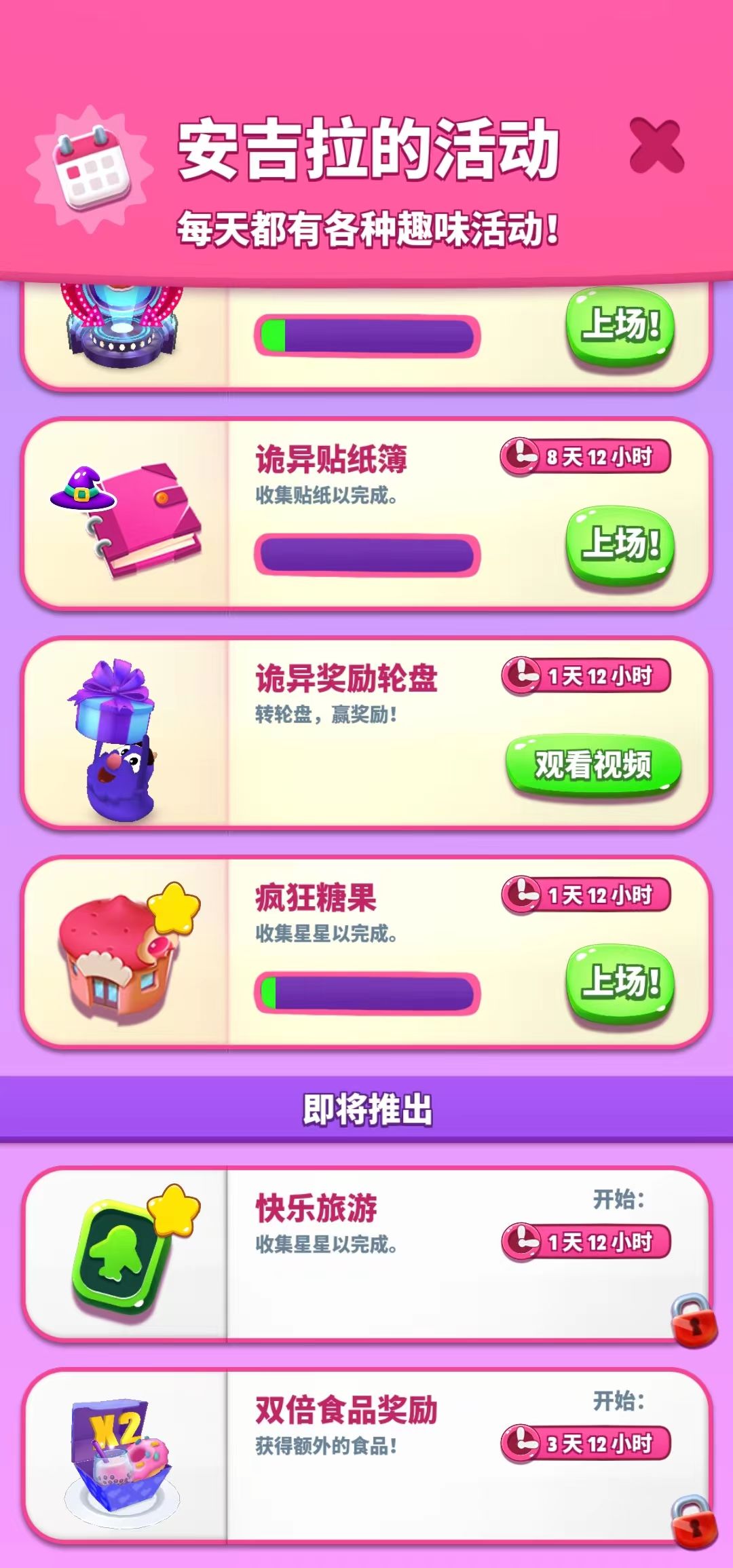 除了日常的吃穿旅游等等的玩法之外,在游戏中也会经常推出很多趣味活动,使游戏不会那么单调。当然,活动伴随着各种奖励,那么我们如何知道这些具体活动呢?除了下方的小红点提示外,我们也可以点开右上角的日历,里面会有当前以及未来几天安吉拉的限时活动,这样就不会错过精彩的活动啦!