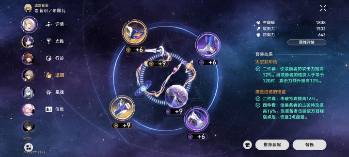 我另外两个位置带的0+0砂金,换成真理也行,因为我全程就放了两次盾,大战伤害能勉强破一层韧性, 另一个带的加拉赫,主要是为了破韧+奶,我技能都没点完,换成其他奶也行