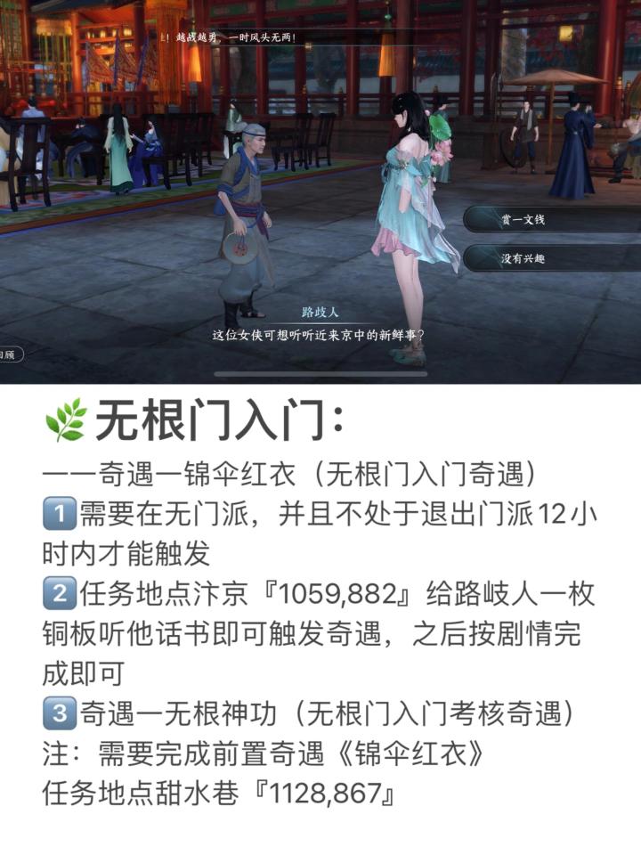 3⃣️奇遇一无根神功(无根门入门考核奇遇)