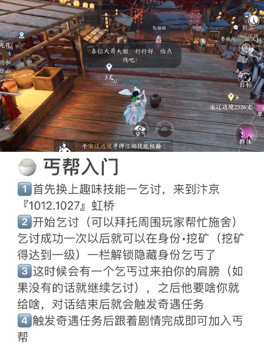 1⃣️首先换上趣味技能一乞讨,来到汴京『1012.1027』虹桥