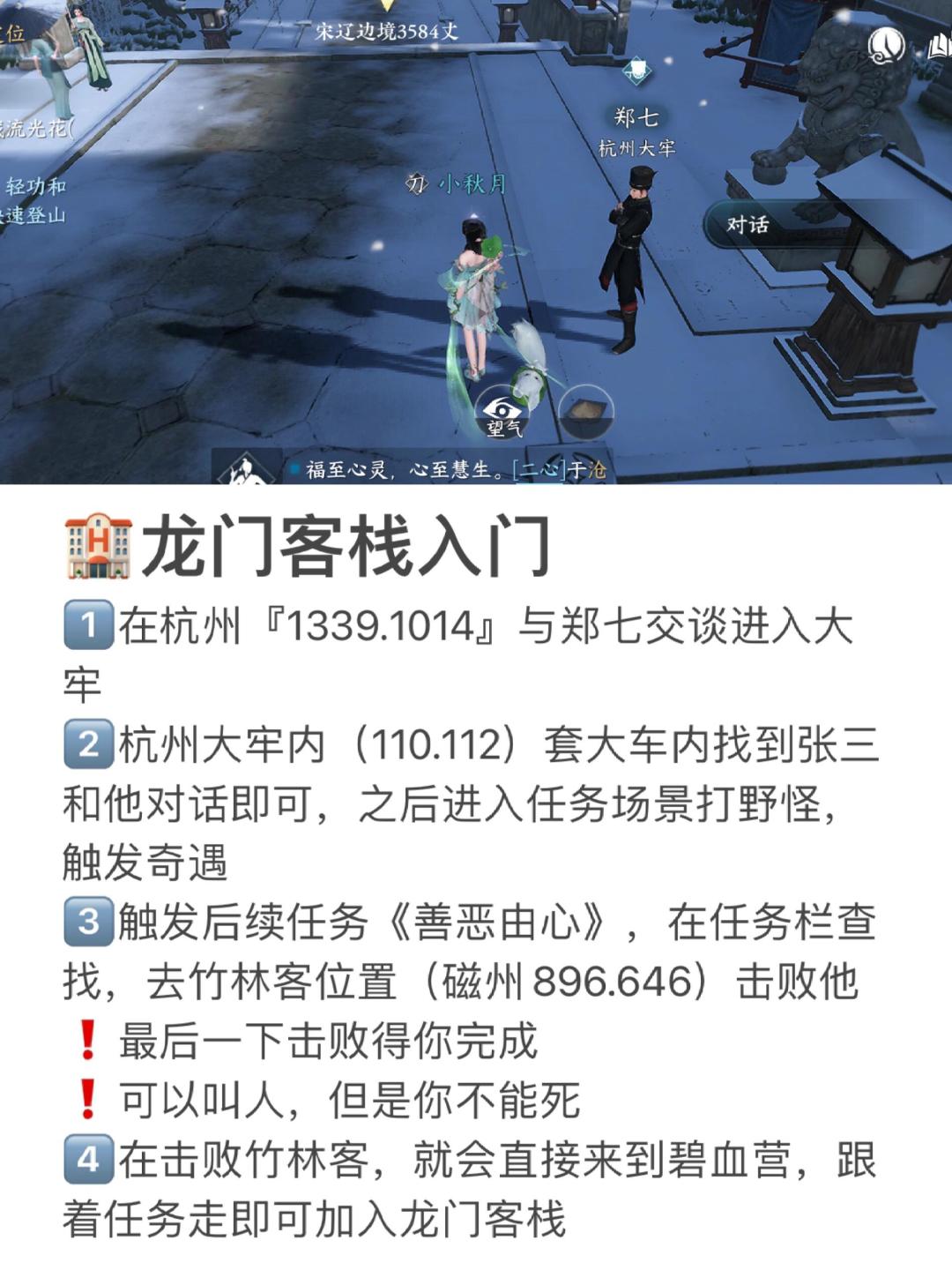 4⃣️在击败竹林客,就会直接来到碧血营,跟着任务走即可加入龙门客栈
