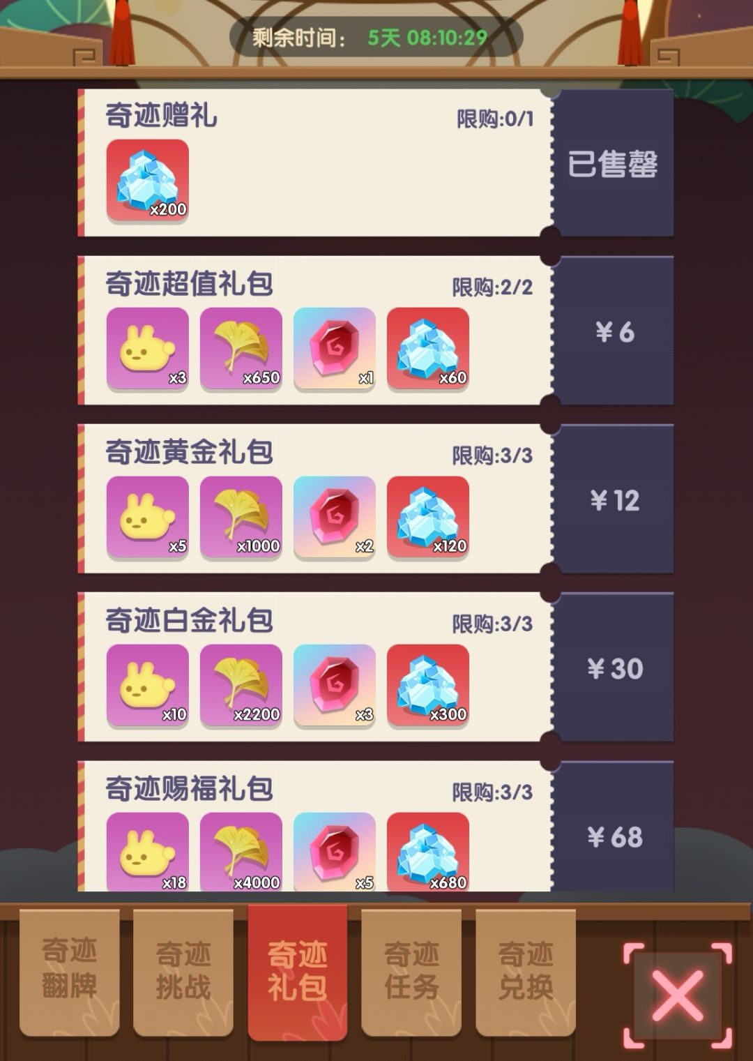 商店购买:利用游戏内商店,使用钻石或活动代币购买翻牌所需的资源。(奇迹兑换优先双刀,然后武器礼包,最后是小金兔补缺,暂不推荐春大力)![[嗒啦啦4_不愧是你]](https://img.tapimg.com/market/images/a9080a7d42b1d9baf3fa892c54bf3381.gif)