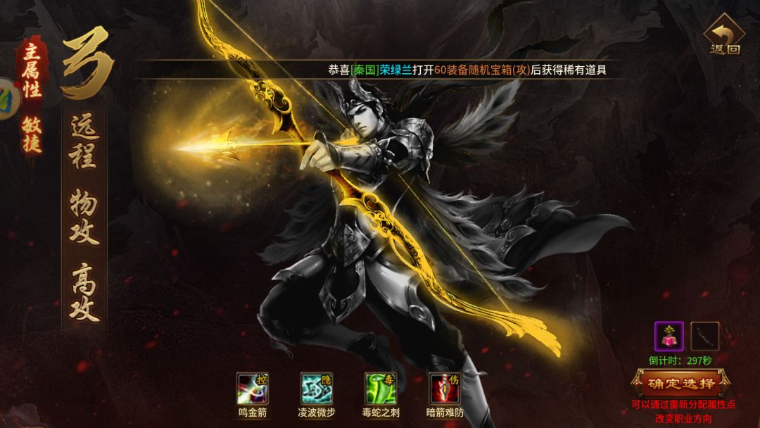 游戏内有三个核心职业:战士,射手,和法师。且有:秦,齐,赵,三个不同国家和男,女两性可选择,当然对于有选择纠结症的玩家还有第三个随机选项并且会赠送一个超值大礼包哟!战士职业