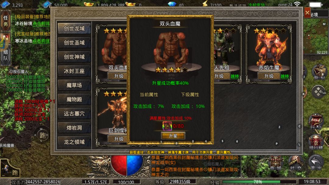 最后,我们有卡牌系统。通过击杀boss,你可以获得boss掉落的专属卡牌,激活这些卡牌可以提升你的战力。这是最容易获取的资源之一,因为只需要击败boss就可以获得。
