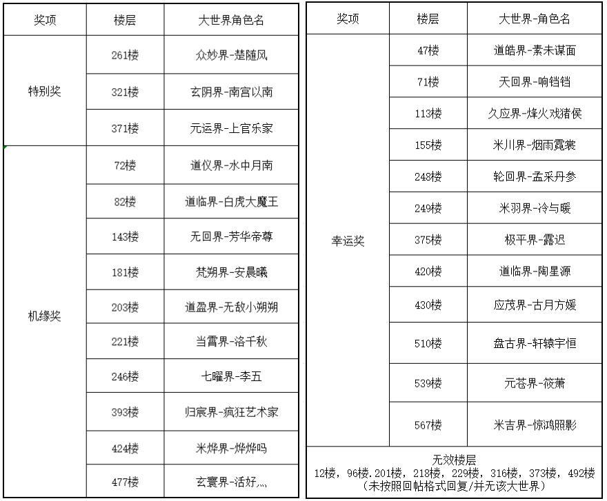 2.若中奖楼层无效,则取消该奖励,不进行顺延;
