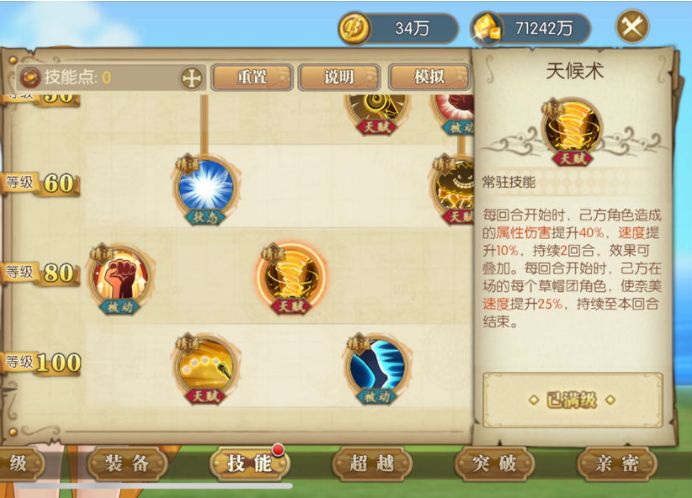 作为草帽团最强导航员,和之国奈美的生存能力是非常有保障的,天赋情报收集在当前AOE伤害横飞的对抗环境中,能够让自身和幻影受到全体技能攻击时有高达300%的伤害减免,该效果虽然会随着回合数降低,但是在配合雷电电击的被动无敌效果和和之国乔巴的治愈护盾强化下是完全不用担心被轻易击杀的,可以说是有着铜墙铁壁一般的坦度。