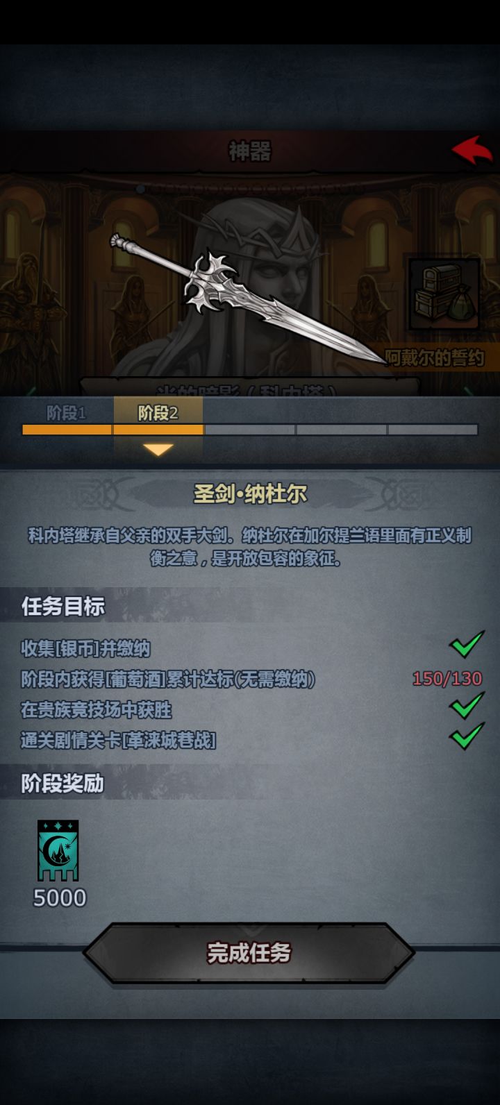 在开启神器任务后,其中会有一些需要收集物资的任务,收集物资的任务中只要是能在市场可以买到的种类物资,比如【葡萄酒】【威士忌】等,可以通过【结婚物资消耗,跑商获取,航海节兑换,丰收节等】能够产生【消耗】的活动中获得任务进度。