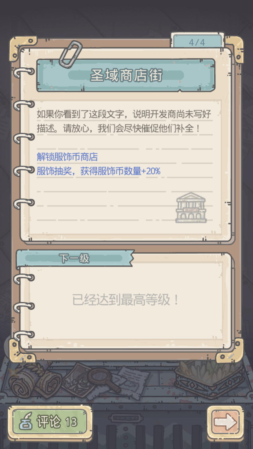 第二个情报图左下角是解锁商店街,抽服饰获得服饰币兑换需要的服饰,我辛辛苦苦开满去抽才发现,只有升华满了的装备再获得转化为服饰币,这没说清楚白白浪费我接近15w情报点,我开抽奖券加成不香吗?这个不必先开,不如把上面提高抽奖数量的加满。