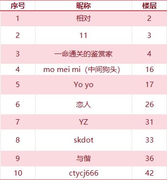 本次活动中奖名单: