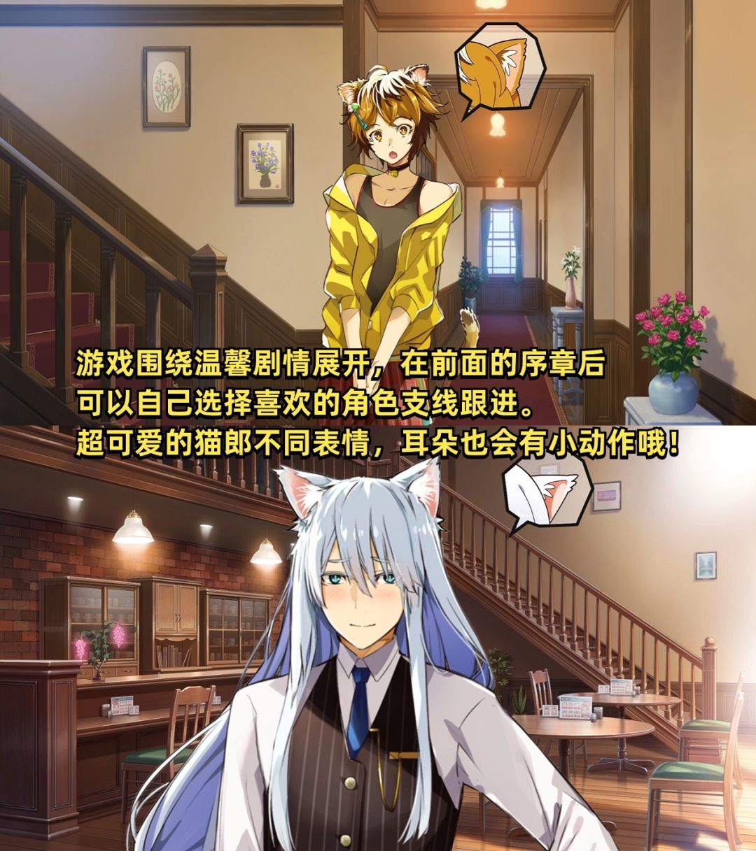 又是一部心动的免费乙游!爷爷去世后,女主继承了爷爷一直经营的咖啡店,没想到一起接盘的还有4位猫郎员工!作为新上任的店长,和你的四位员工一起让咖啡店重新走上正轨吧!当然,在这个过程中,你会和性格各异的他们发生许多奇妙的故事…………