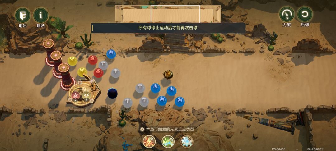 5.3霜+水直接打反应结束战斗。霜和水球避免碰到指针,会被指针直接消掉,每打一次球,指针会顺时针转45度。可以利用它的这个特性,选择打球的路线,当然也可以打别的颜色的球再回溯之类的进行指针的调整。
