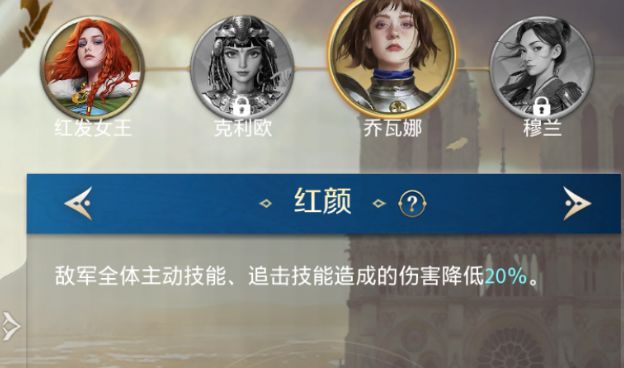 红颜队组成的红颜羁绊十分强力,能让敌军全体主动技能、追击技能造成的伤害降低20%。