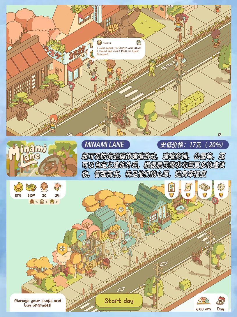 超可爱的街道模拟建造游戏,根据居民需求布置更多的建筑物