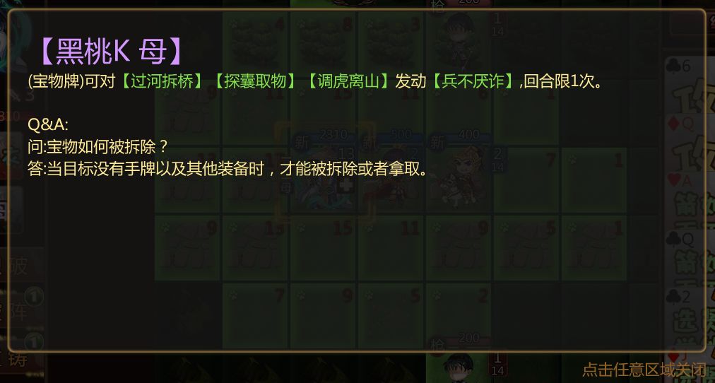「识破」:(1)可将黑桃手牌或装备牌当【兵不厌诈】打出(2)【任意计谋牌】距离+1,谋防+200。