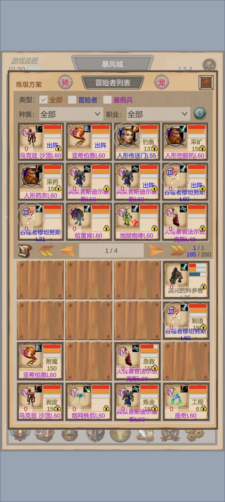 以这个阵容很容易通关58级副本,抓狼和蜘,这二个都非常能召唤,狼做宠物,蜘蛛有领导力可以上阵放后排。