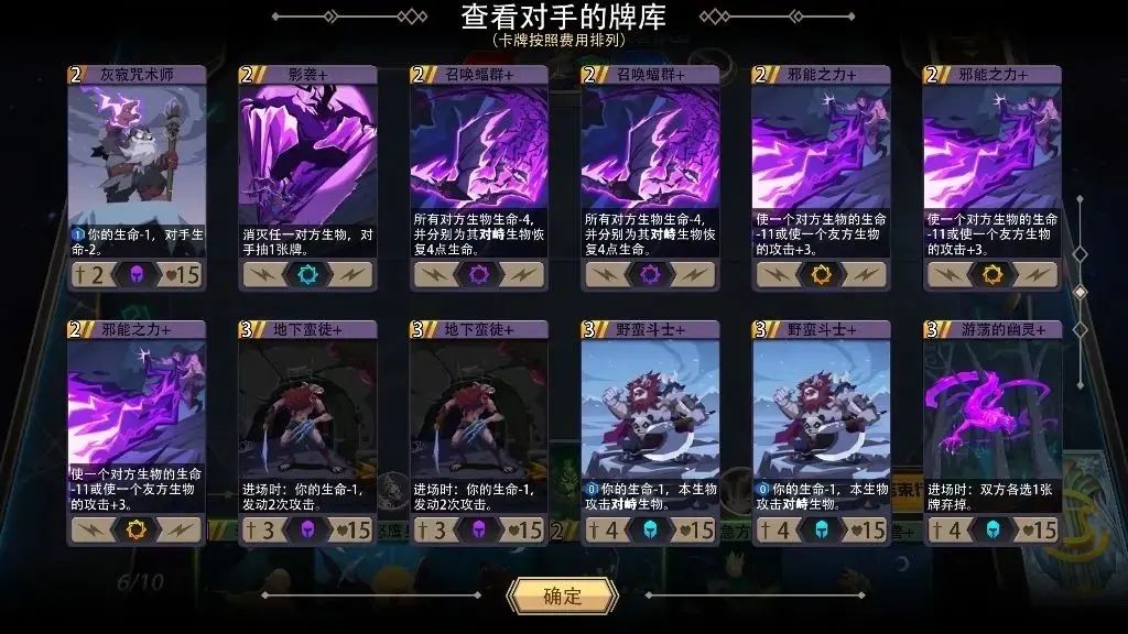 1、该首领前几回合的行动基本上是先咒术师、再野蛮斗士、再诡异施咒者(在我方不挡对位怪的情况下),所以前期可以先上低费怪放对方怪的对位,触发对方1费主动,延缓对方上施咒者的节奏。