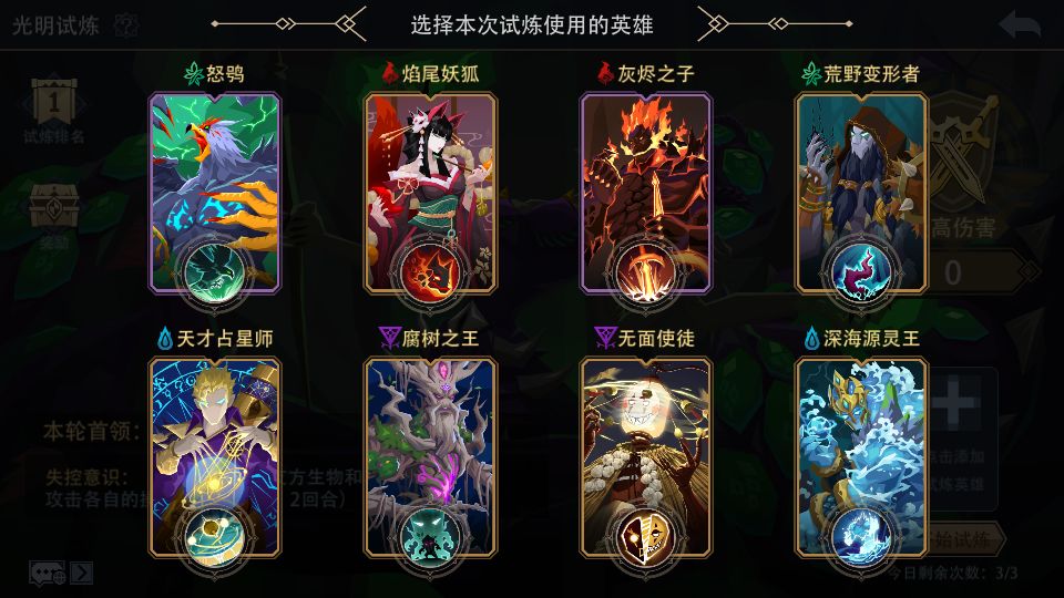 蘑菇补血流:(孢子+树妖+低语者+生命古树+治愈之风等)该常规打法一般可以拿满魔晶奖励,2000分伤害打满需要的条件较高。