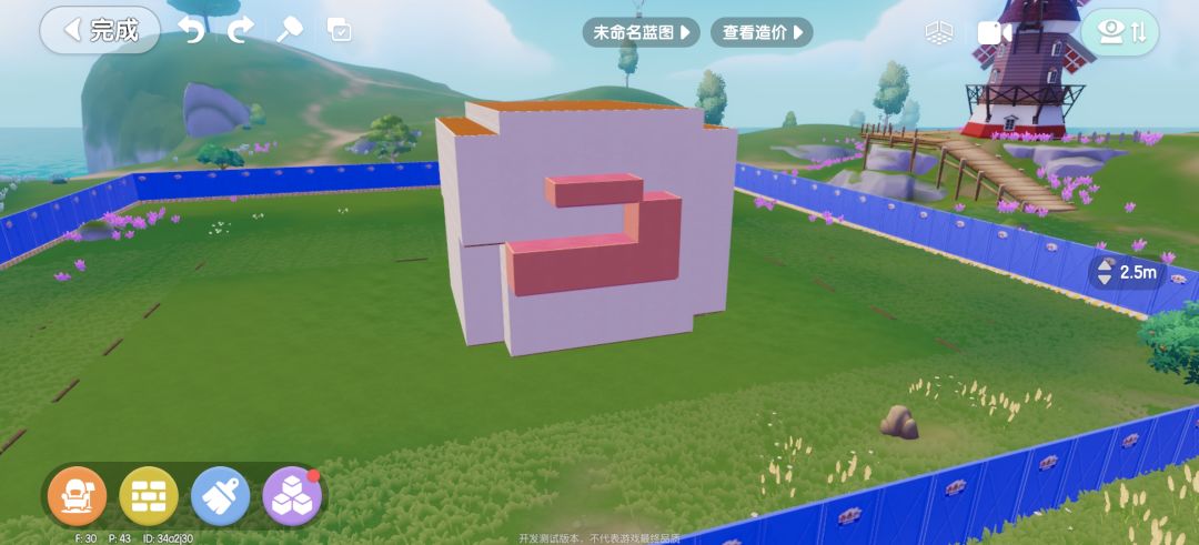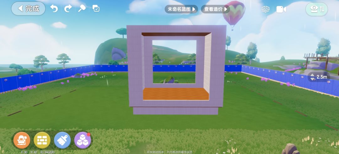 注:这里搭建完后应该是个立方体,长宽为7*7【地板】,高为12块【矮墙】