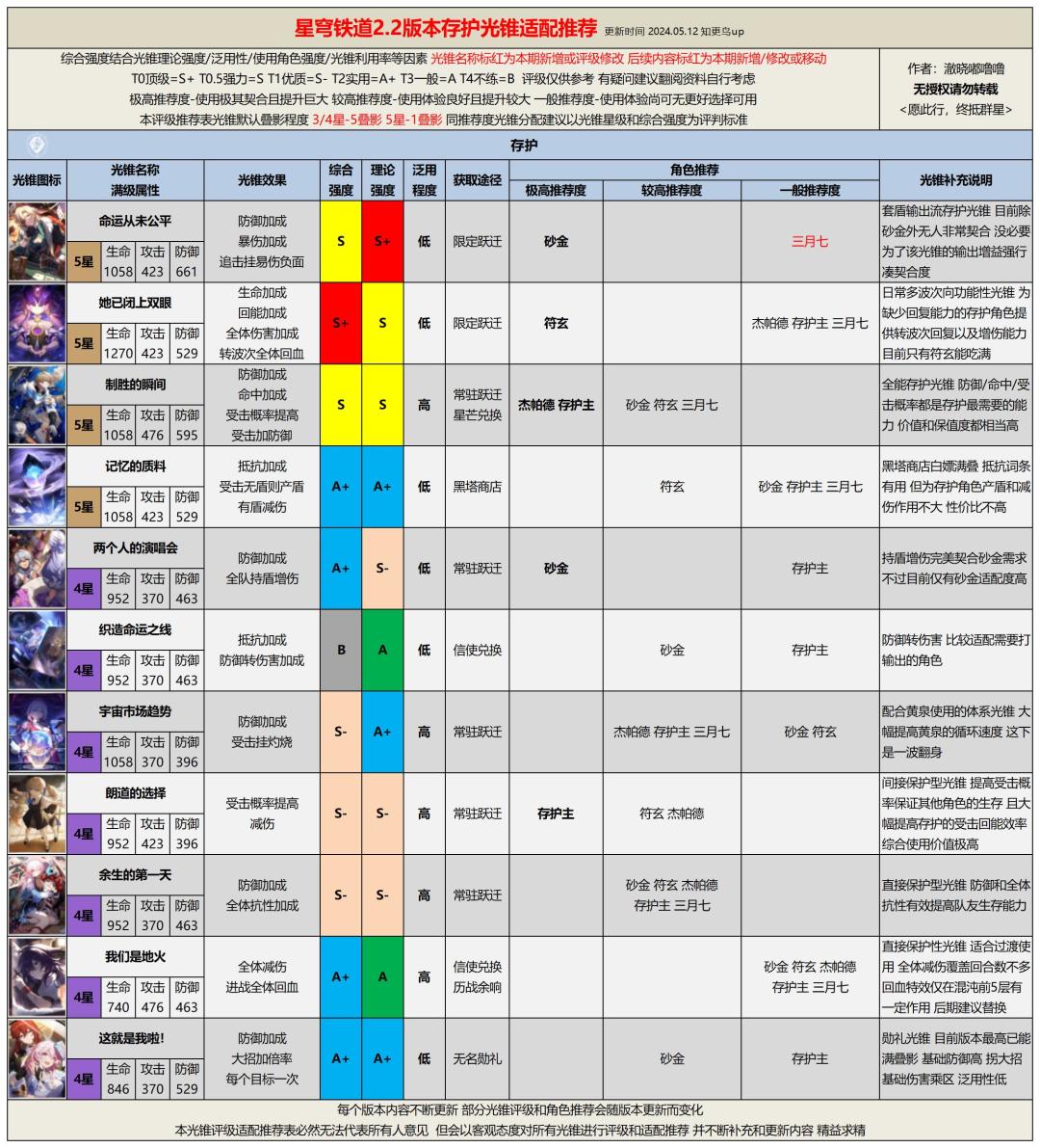 版本不断更新,环境不断变化,任何光锥的评级和适配角色都有可能发生变化,未来本系列攻略也会随版本持续更新,为各位带来最直观最有效的游戏攻略。