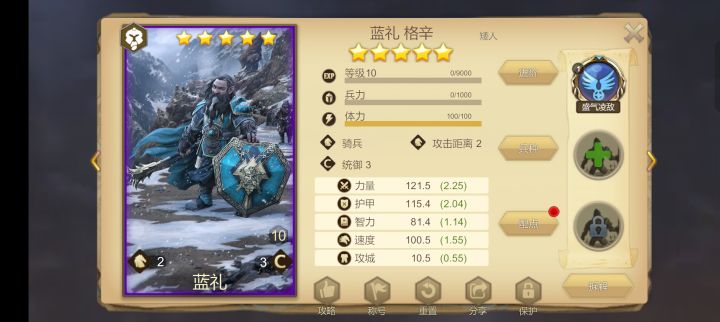 首先伤害率和恢复率至少提高百分之150以上,其次他为友军单体恢复兵力,很容易给满血的友军恢复,我建议改成给兵力最低的友军单体恢复,这样不会浪费技能,带个风雷和坚不可摧还是能用一下,否则就是材料了,希望策划可以采纳一下,要是最近一段时间不打算改的话,那我就当材料用了,省着当仓库守门员,浪费格子。