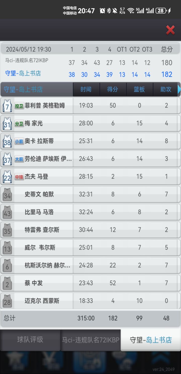 1,自从常规时间最后一分钟下场后,我的大哥7号英格勒姆没有受伤,却再也没有上过场,其他的轮换都是正常的,导致我候补球员杭斯沃尔纳上场时间比大哥都长;