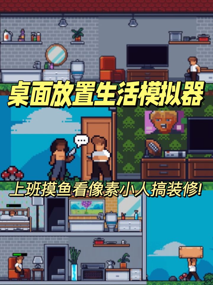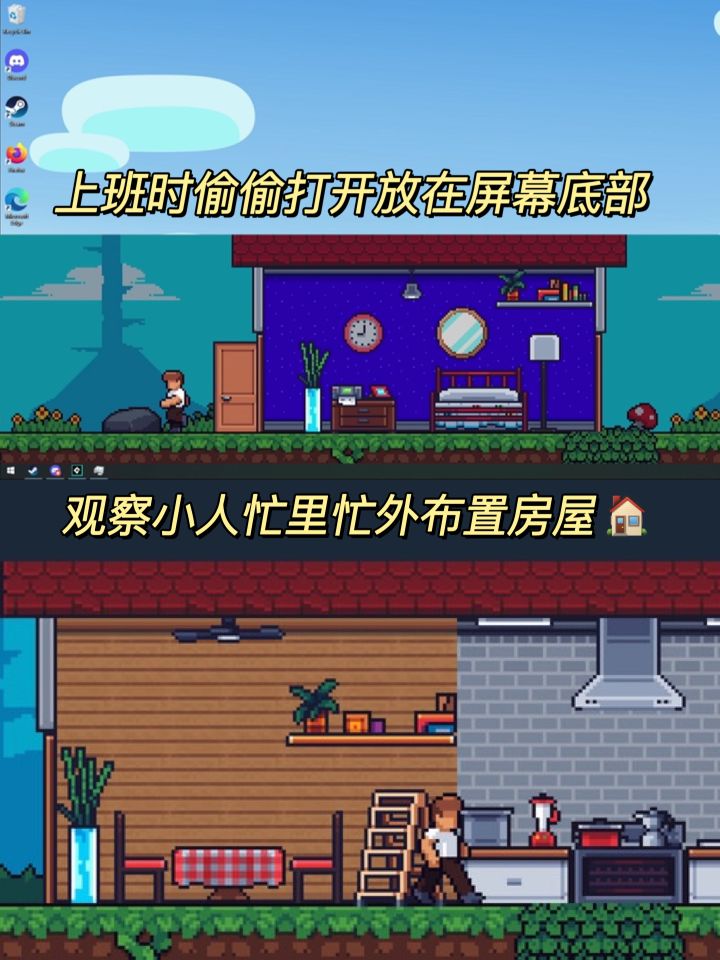 ✨这是一款放置在电脑桌面底部的像素小人生活游戏🥳日常上班顺带偷窥一眼小人在干嘛,还挺有意思的!