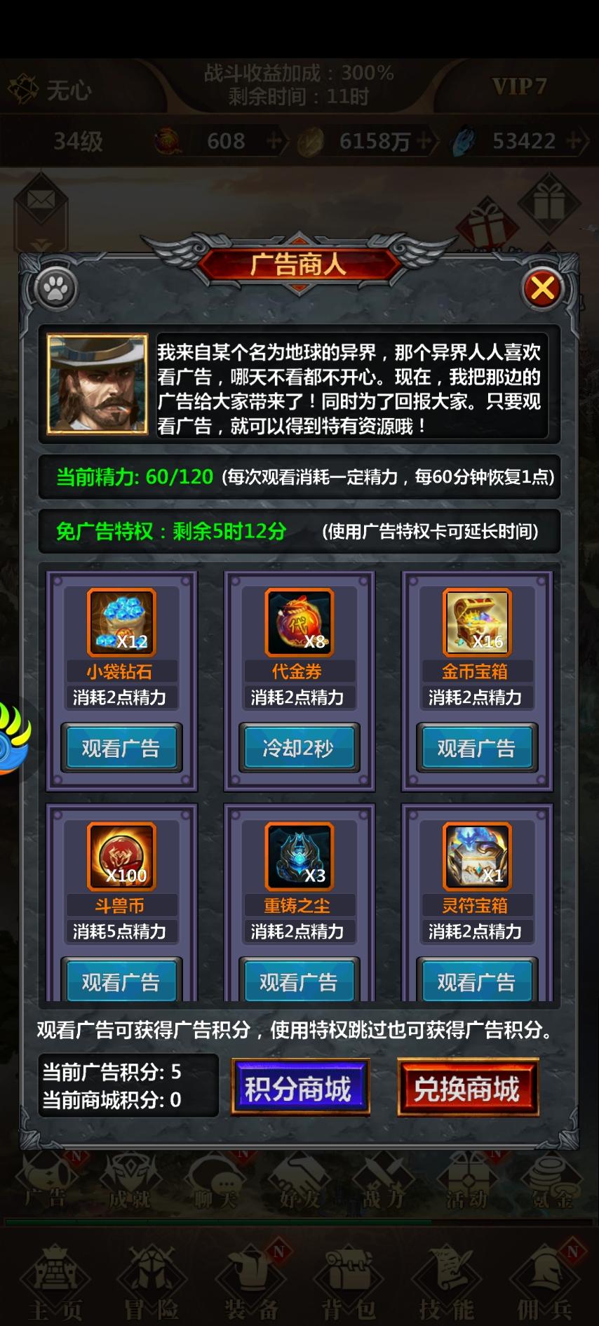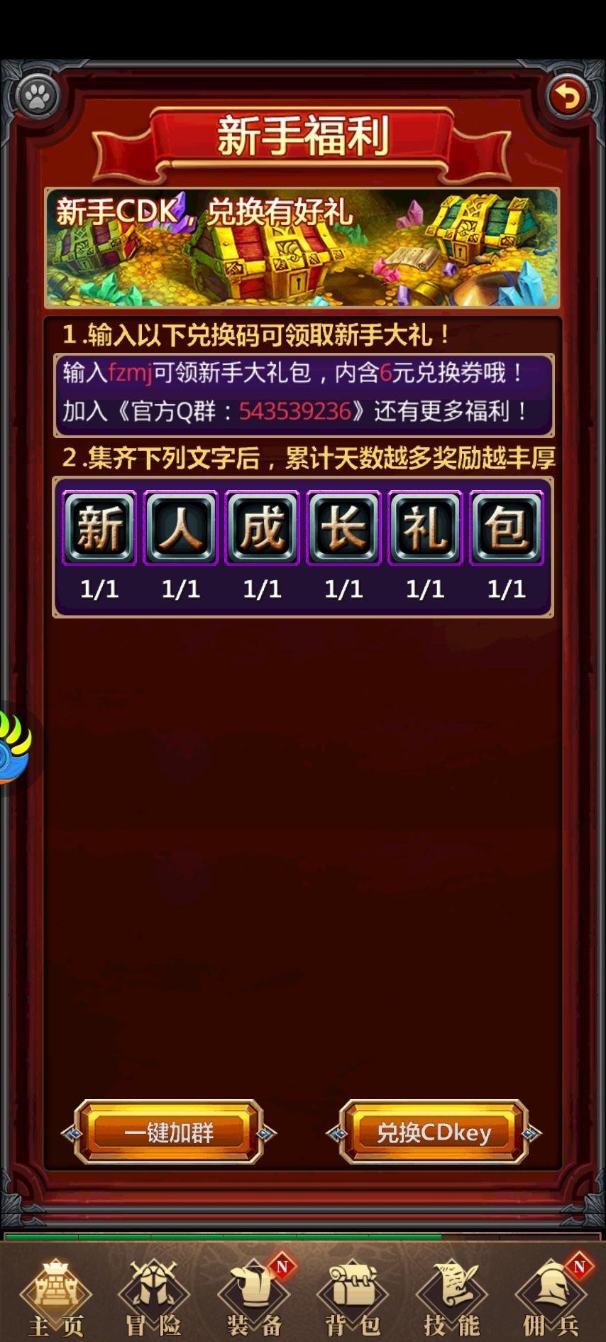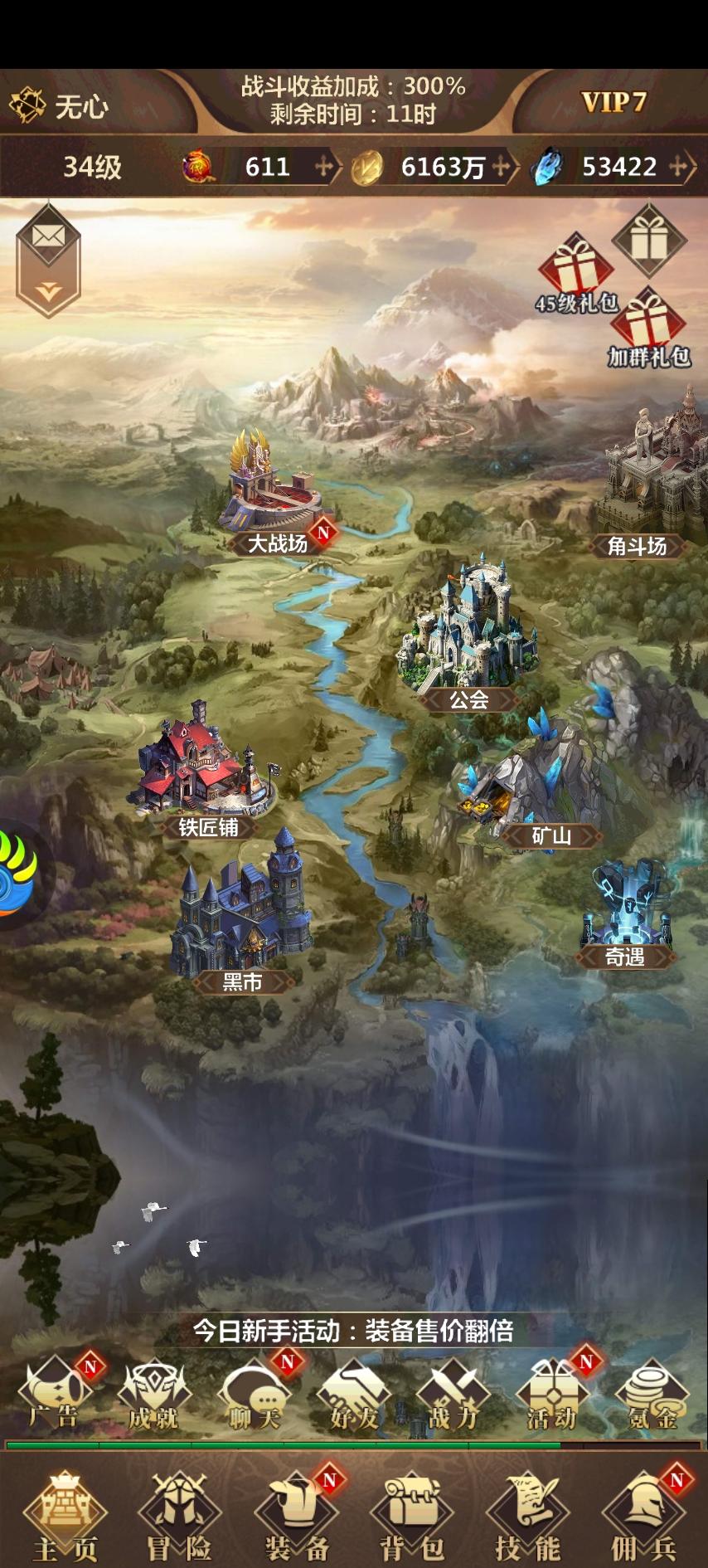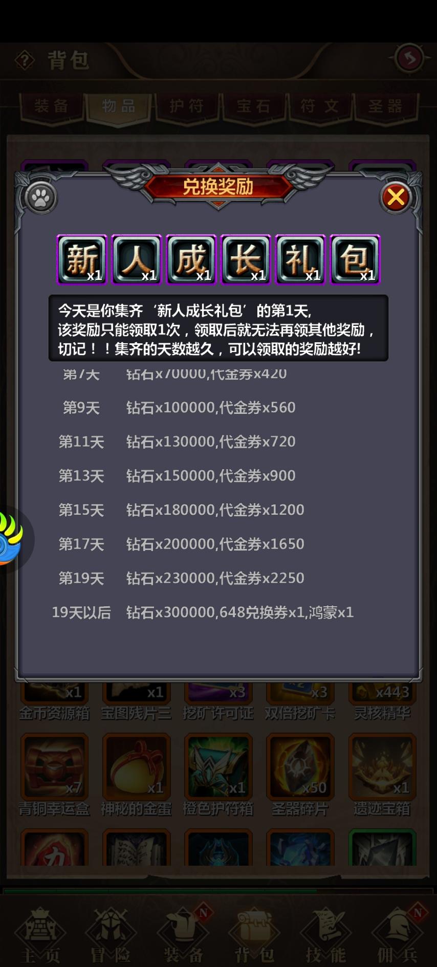 这几天才开始玩,注册账号,福利很多,创建角色有三种,战士,法师,猎手。个人感觉差不多吧。下面说说福利,刚开始,点击右上角加群礼包,加入群领取兑换码,在活动,往下滑新手福利兑换,在新手福利文字里,也有兑换码。在背包把代金券用了,可以获得充值奖励,钻石,增加VIP经验,之后在活动领一些福利,接着主城左下角广告,这个必须得看,(如果不想看,可以小克一点,购买免广告卡)。可以兑换代价卷,相当于真实的充值奖励。还有主城左下角成就,完成了,可以领取角色属性和金币,兑换券。游戏刚开始打不过,可以在黑市购买一些装备,但要主要有些装备有限制角色哦。后面内容很多。可以慢慢挖掘。