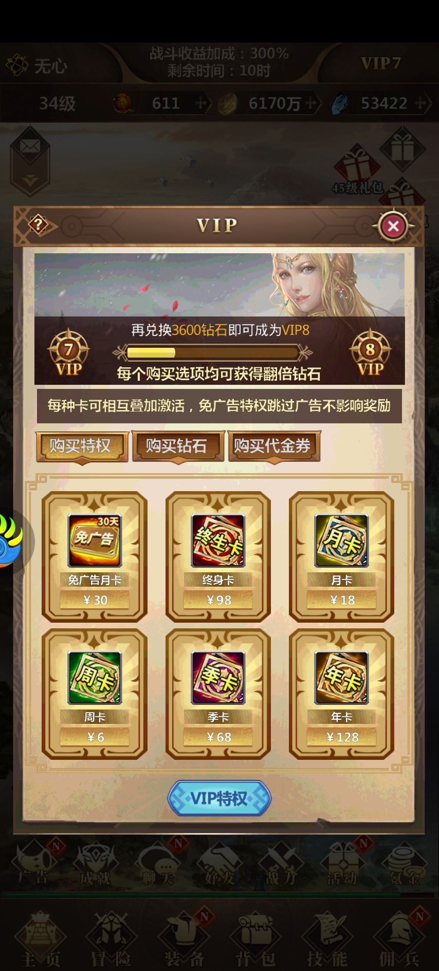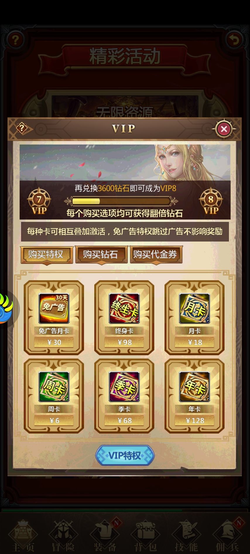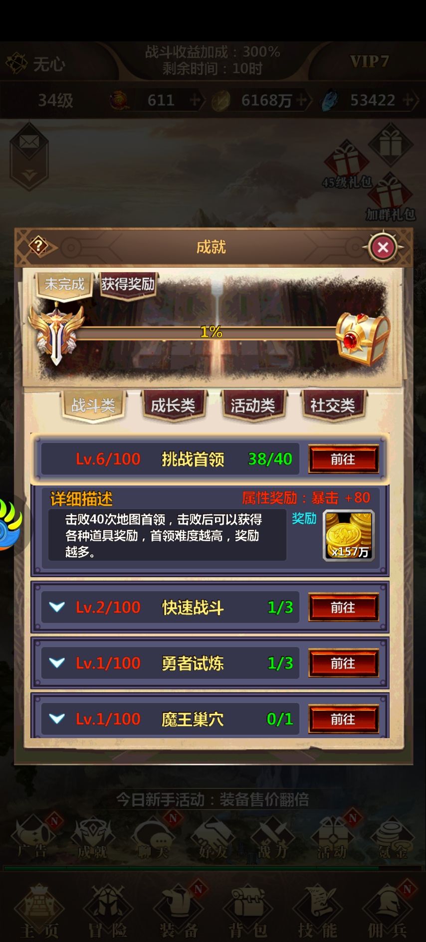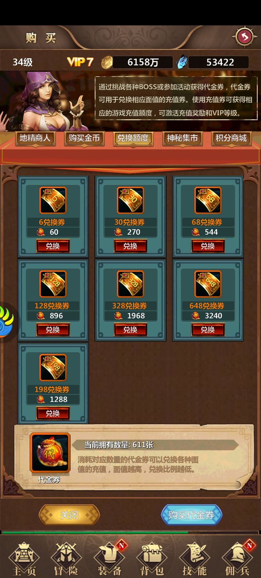 这几天才开始玩,注册账号,福利很多,创建角色有三种,战士,法师,猎手。个人感觉差不多吧。下面说说福利,刚开始,点击右上角加群礼包,加入群领取兑换码,在活动,往下滑新手福利兑换,在新手福利文字里,也有兑换码。在背包把代金券用了,可以获得充值奖励,钻石,增加VIP经验,之后在活动领一些福利,接着主城左下角广告,这个必须得看,(如果不想看,可以小克一点,购买免广告卡)。可以兑换代价卷,相当于真实的充值奖励。还有主城左下角成就,完成了,可以领取角色属性和金币,兑换券。游戏刚开始打不过,可以在黑市购买一些装备,但要主要有些装备有限制角色哦。后面内容很多。可以慢慢挖掘。