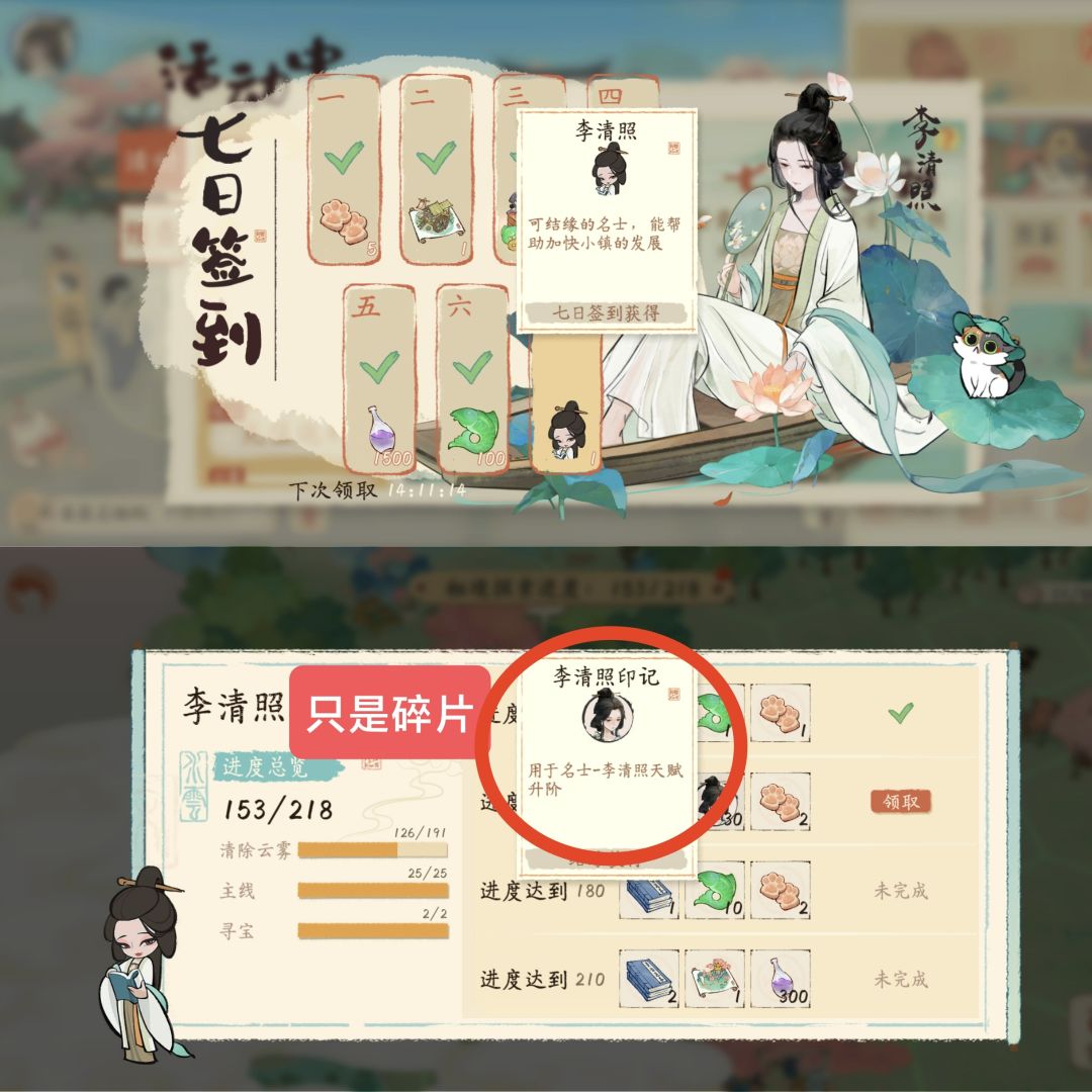 第七天凌晨可以签到拿李清照,又有秘境给的印记直接天赋2专门跑商了!!!