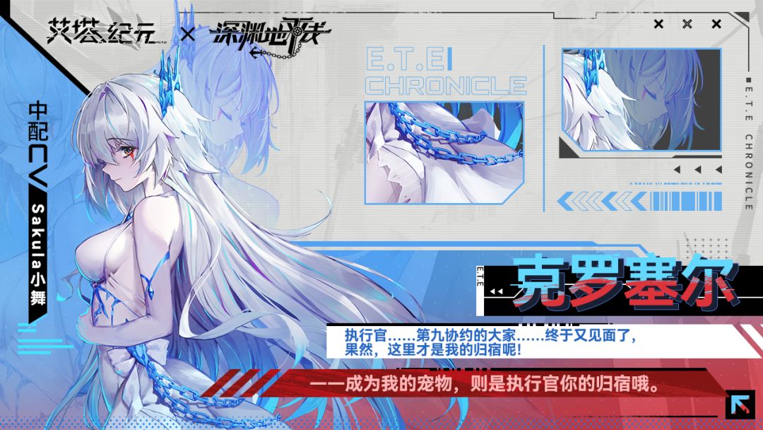 亲爱的执行官:《艾塔纪元》×《深渊地平线》续航计划正式开启,由全民执行官从《深渊地平线》里投选的角色「克罗赛尔」将于1.2版本「深渊同行」中正式登场!随着新同步者的到来,游戏内也将开展一系列丰富有...