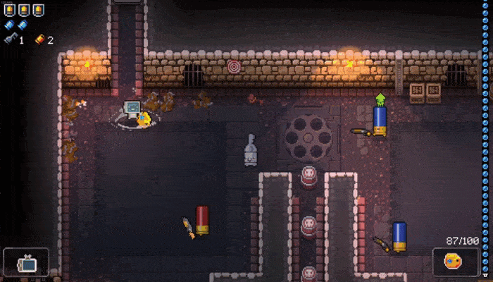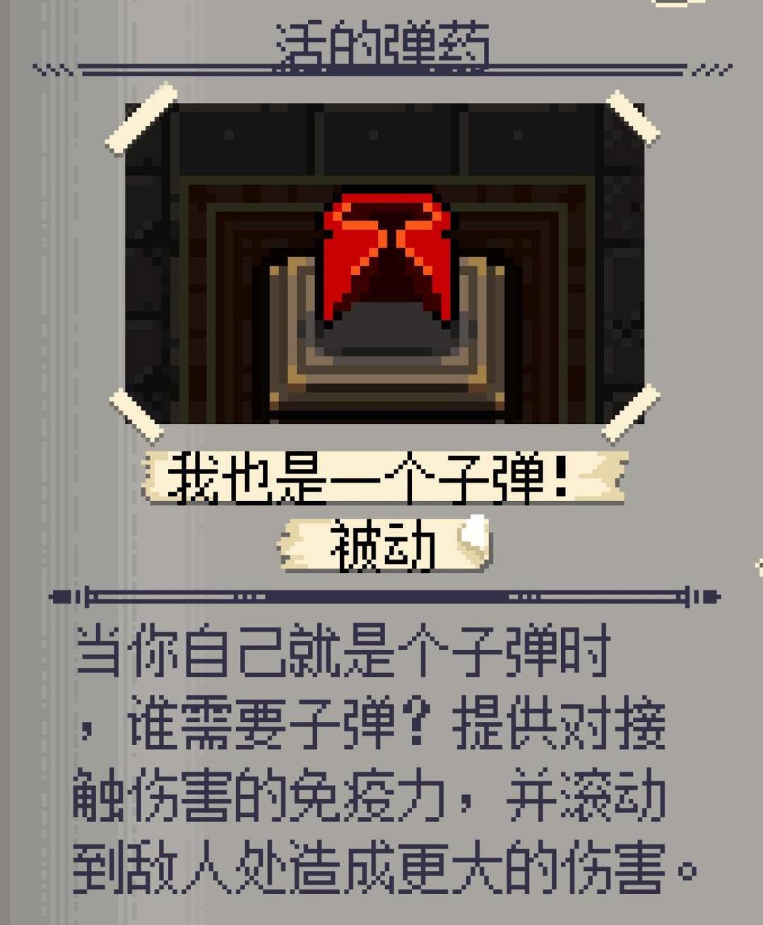 子弹子弹算是我在解锁DLC角色前最为钟爱的角色了,当然,其解锁条件也更是相对苛刻了一些。当玩家完成了任意角色的抹除过去的任务后,便能够在地牢中见到穿着红披风不会攻击你的子弹人,在放过子弹人五次后,便能够解锁子弹这一角色。