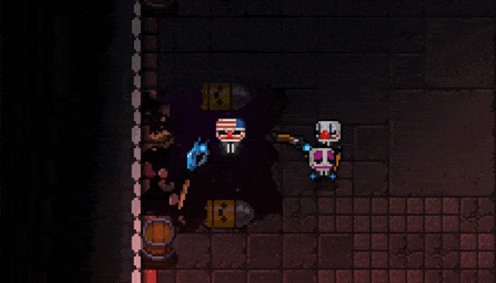 机器人自带的道具也是颇有说法,子弹带电+主动道具丢出一瓶水进行范围环境水电伤害能够有效的辅助机器人进行清场,同时电池子弹也额外增加了射击准确度,可以说是指哪儿打哪儿了。