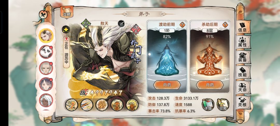 输出统计和敖天差不了多少,卫寒黄1天命 等级80级+练体80级+灵根6级,230万战力;龙人是红3天命 等级81级+炼体88级+灵根180级,接近500万战力;先遣服使用感受强度不说超龙人吧(主要是怕被龙人粉喷)但是肯定不比龙人差,感觉唯一比龙人差的是音效打击感。布阵站位推荐前排一号位,其他刀修都是后排,为什么卫寒站前排一号位,因为他独特的天命机制每回合触发一次名刀,加上被动释放buff后队友攻击时的协战机制,造就了第二个能扛能打的逆天仙缘修士。