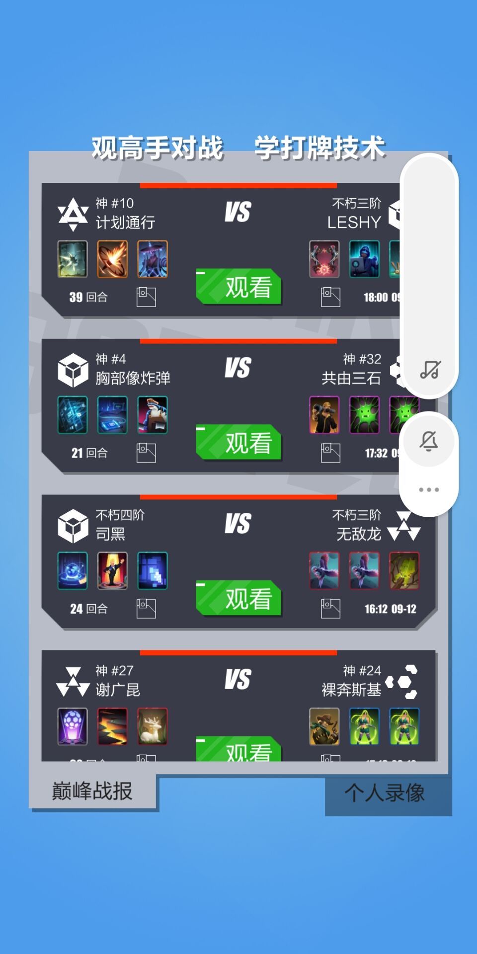 1.点开巅峰录像,找到回合旁边的拷贝按钮。