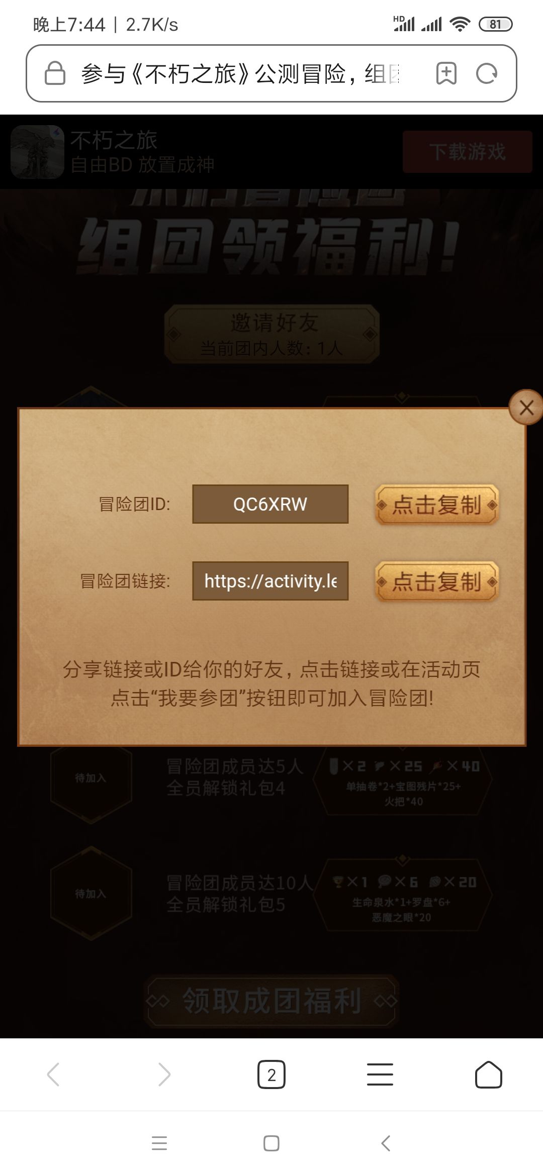 组团拿奖励