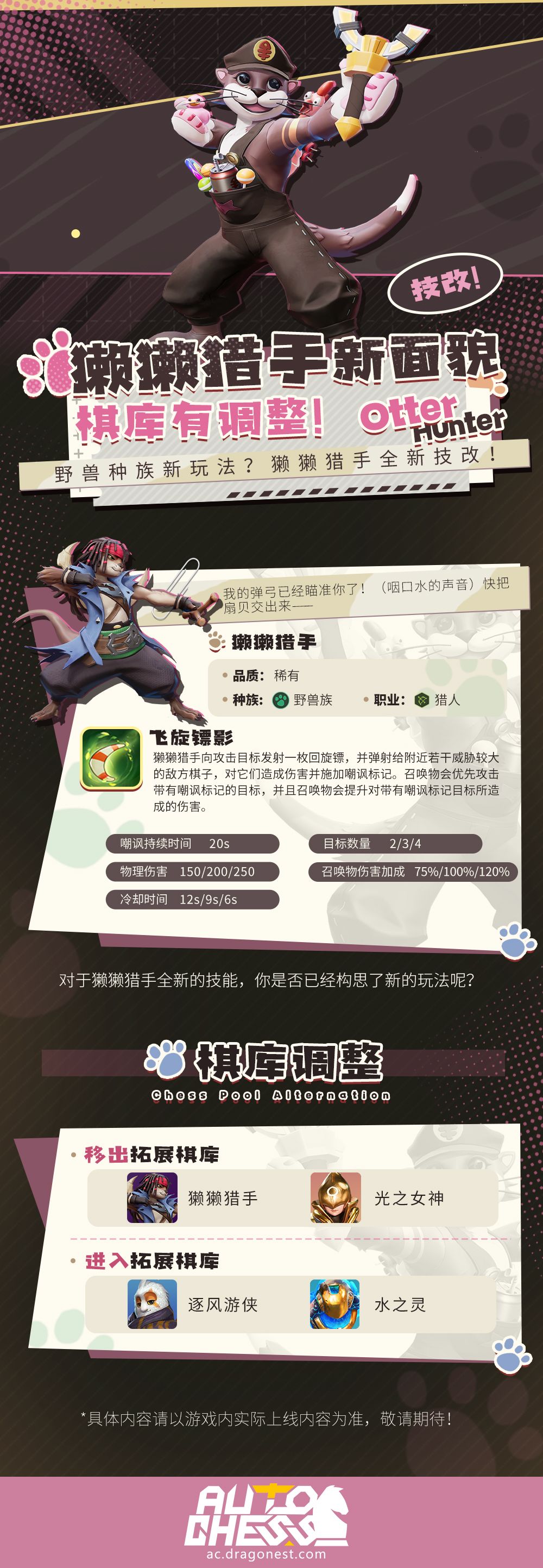技改!獭獭猎手新面貌,棋库有调整!
