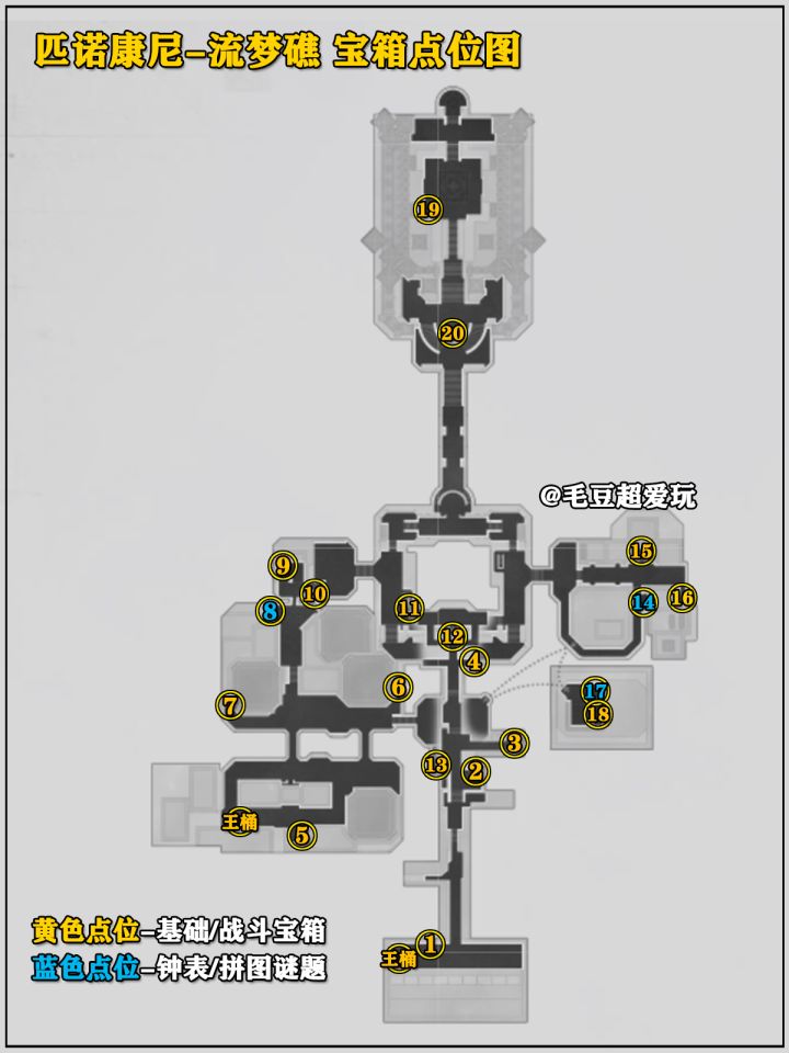 本期毛豆整理了2.2版本新增地图匹诺康尼-流梦礁的宝箱点位,下篇共包含13-20号宝箱的收集路线,1-12号宝箱请移步上篇。
