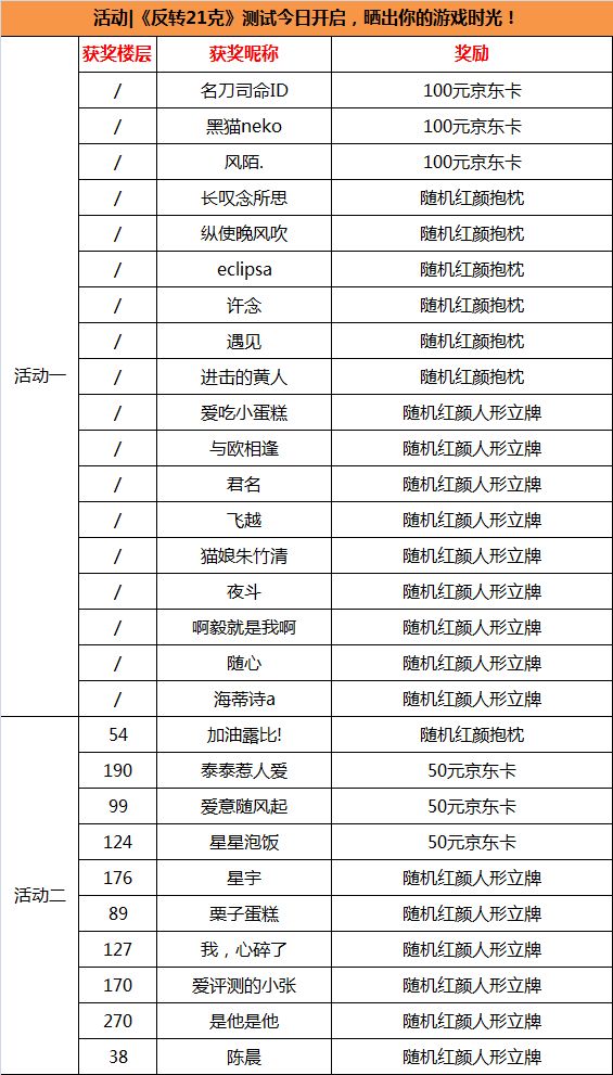 1、中奖楼层仅供参考,以实际昵称为主;