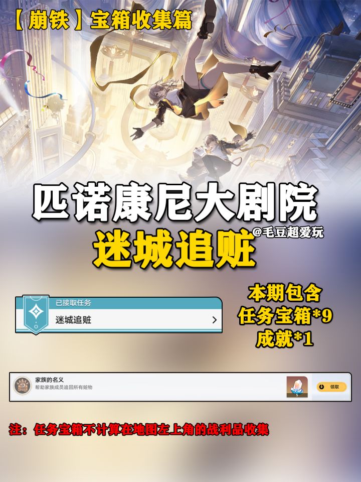 敲黑板,这里是进攻略前的小提示:开拓者需要优先完成系列开拓任务《在我们的时代里》,进行该任务时自动开启地图匹诺康尼大剧院,该任务获取的9个宝箱均不计算在「匹诺康尼大剧院」地图左上角的战利品收集数,任务完成代表所有任务宝箱均已领取。