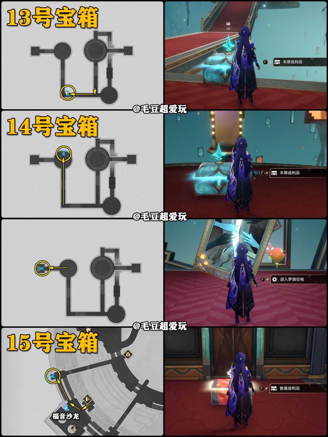 本期毛豆整理了2.2版本新增地图匹诺康尼-匹诺康尼大剧院的宝箱点位,上篇包含1-15号的宝箱收集路线,16号及后续宝箱请看中、下篇。