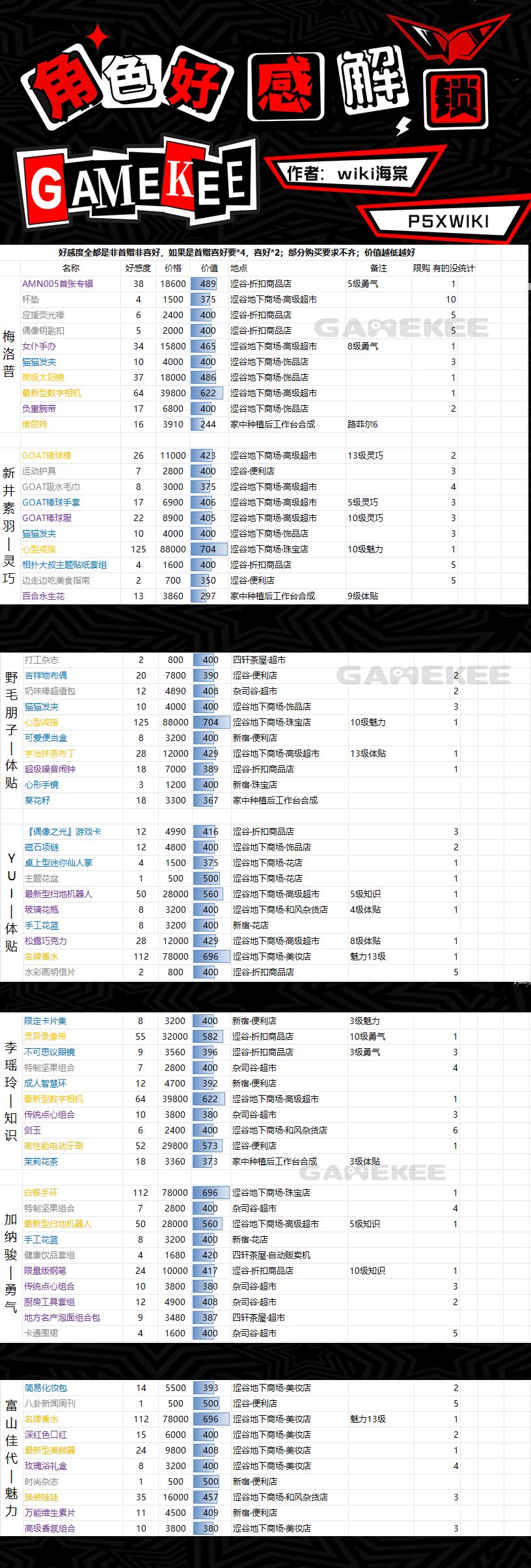 - 下面把各协同者偏好礼物及购买价格、条件附上(暂不包含新版本1.1中新增的协同者Yui与加纳骏),表格整理来源于wiki攻略组-海棠,也希望各位小伙伴多多交流探讨、批评指正。