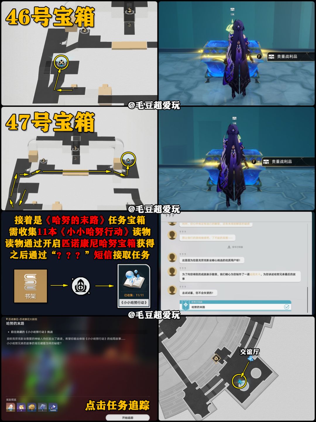 宝箱查漏补缺的优先看哈努阅读物是否拿齐了,哈努阅读物通过开启匹诺康尼地图中的哈努宝箱获得,只要宝箱没有漏开,哈努阅读物就肯定是齐的!