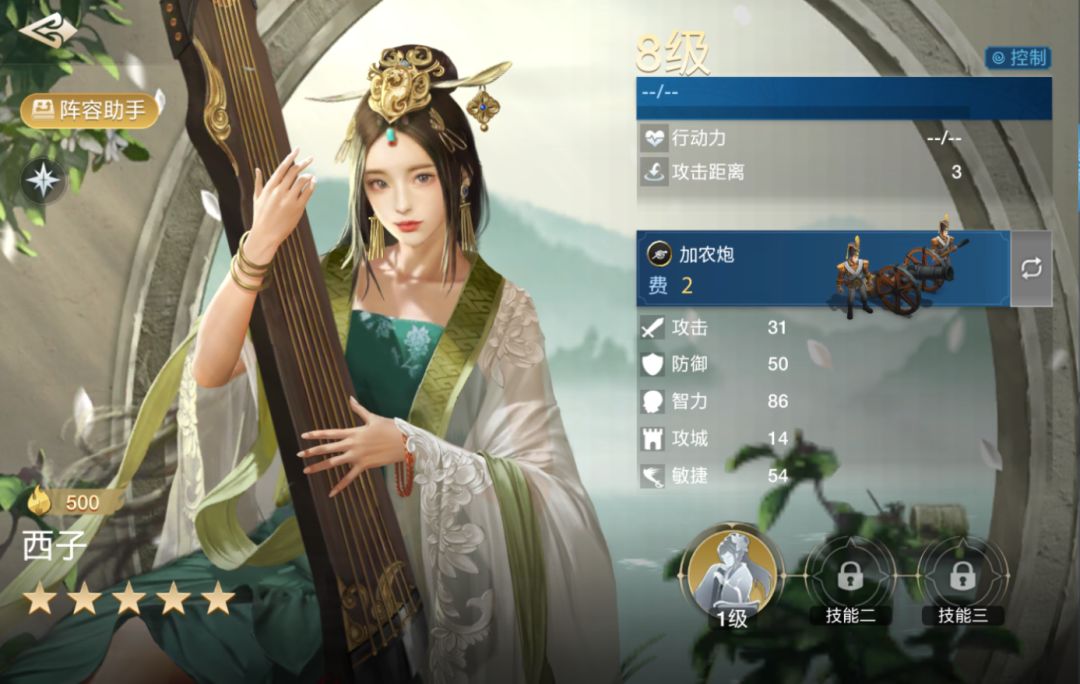 西子擅长使用远程兵种。攻击距离为3,在团队中一般担任中军位使用智力/辅助型兵种进行战斗。