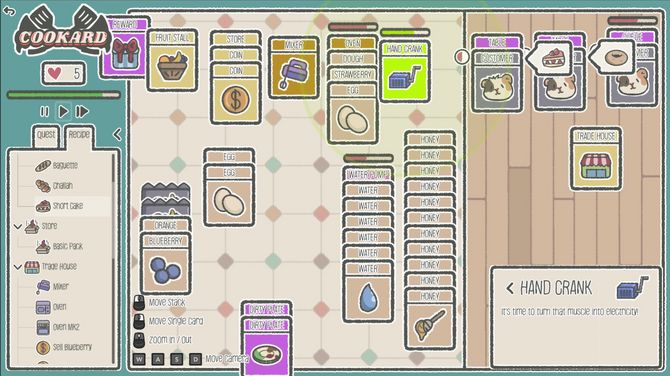 《Cookard》是一款面向小动物顾客的治愈系餐馆经营新游,将料理与卡牌玩法结合,为满足小动物顾客们的各种需求,调制料理各种比例的食材,获取收益后可以购买更多食谱卡牌,从而扩大经营,打造完美的动物餐厅。