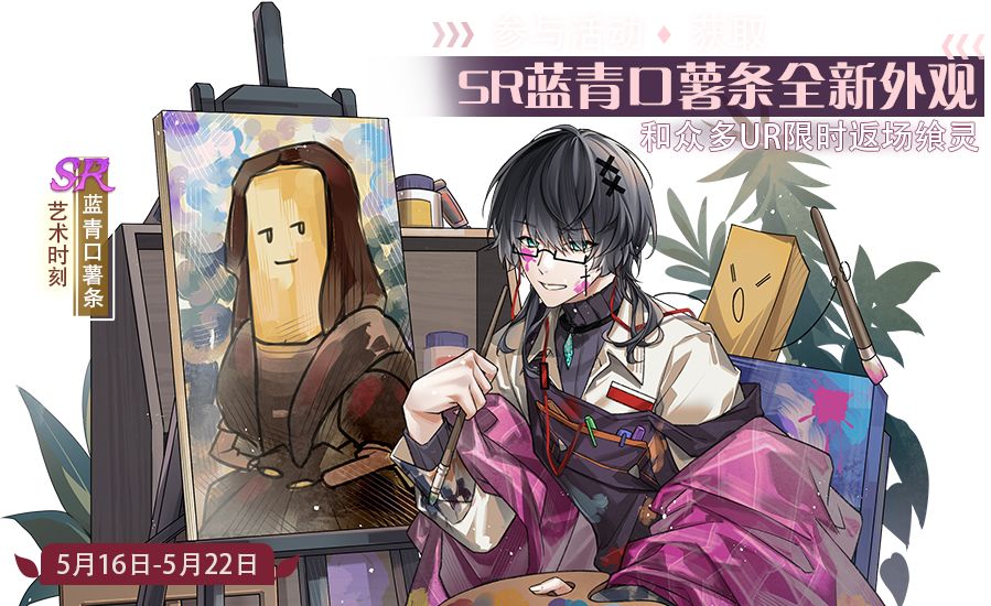 活动描述:活动期间,返场狂欢会主题活动第四十期全新上线。每日完成任务可领取抽奖道具,参与抽奖即有机会获取SR蓝青口薯条全新外观-艺术时刻和众多UR限时返场飨灵,更有珍稀头像框和海量游戏内道具等您来拿。