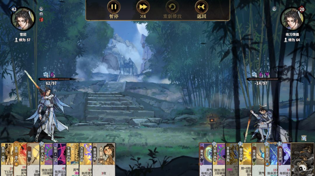 灵活的一点,面对水月时,可以不给灵气,不触发自身的追加保留剑意然后用其他多段卡去触发剑意,达到每一动拆防。例如破绽剑胚神行飞灵御空万法连环云舞,打一些水月卡组很不错。